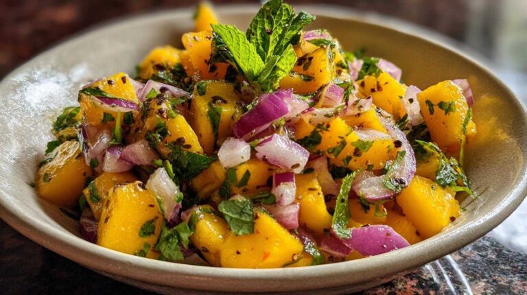 Choosing the right mangoes makes all the difference. Look for ones that yield gently when squeezed. They should smell sweet at the stem. Ripe mangoes bring natural sweetness. They also give our salad a lovely, soft texture that melts in your mouth.