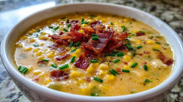 - Serve: Serve your creamy corn chowder hot. Garnish with that crispy bacon you saved. Fresh parsley or chives are also lovely. Enjoy!